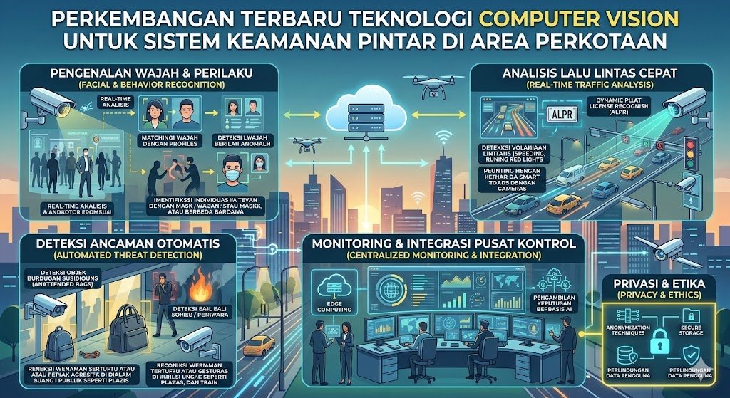 Seiring dengan kecanggihan teknis yang ditawarkan, perkembangan Computer Vision terbaru juga mulai fokus pada aspek “Edge Computing” untuk menjaga privasi warga. Pemrosesan data visual kini lebih banyak dilakukan langsung pada perangkat kamera (edge) daripada mengirimkan seluruh rekaman mentah ke server pusat. Hal ini memungkinkan anonimisasi wajah atau data sensitif secara instan sebelum data disimpan, sehingga standar keamanan tetap terjaga tanpa melanggar hak privasi individu. Melalui pendekatan teknologi yang etis dan efisien, Computer Vision menjadi pilar utama yang menjamin keberlangsungan hidup perkotaan yang dinamis, modern, dan terlindungi dari berbagai potensi gangguan keamanan di masa depan.
